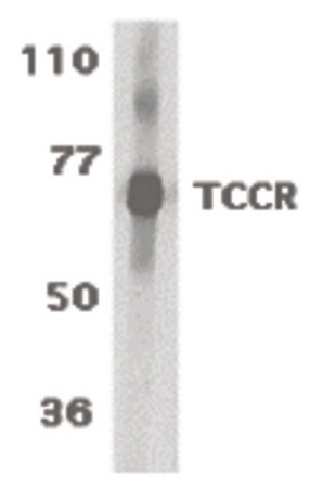 Western blot of TCCR expression in human spleen tissue lysates with TCCR antibody at 1 ug /ml.