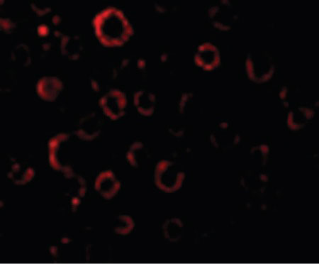 Immunofluorescence of MADD in HeLa cells with MADD antibody at 20 ug/ml. |
