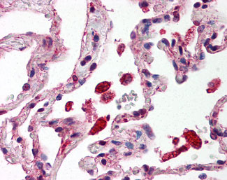 Anti-STAT1 antibody IHC of human lung, alveolar macrophages. |