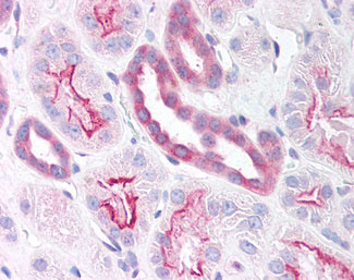 Anti-MEFV antibody IHC of human kidney. |