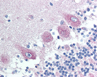 Anti-CAMK2A antibody IHC of human brain, cerebellum. |