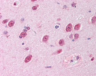 Anti-AKT1 antibody IHC of human brain, cortex. |