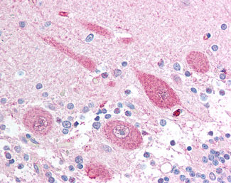 Anti-APH1A antibody IHC of human brain, cerebellum. |
