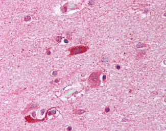 Anti-HAP1 antibody IHC of human brain, cortex. |