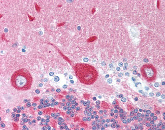 Anti-NCS-1 antibody IHC of human brain, cerebellum. |