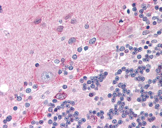 Anti-CNR1 / CB1 antibody IHC of human brain, cerebellum. |