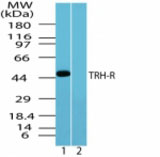 Western blot of human TRH-R in human brain lysate in the 1) absence and 2) presence of... |