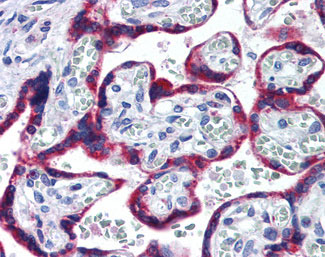 Anti-HSP90B1 / GRP94 antibody IHC of human placenta. |