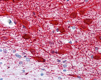 Anti-MAP2 antibody IHC of human brain, cortex. |