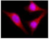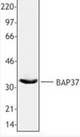 Immunofluorescent microscope analysis of Hela cells using anti-BAP37 polyclonal antibody (red). |