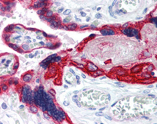 Anti-Cytokeratin 19 antibody IHC of human placenta. |