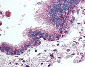 Anti-HDAC4 antibody IHC of human lung, respiratory epithelium. |