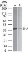A mixture of synthetic peptides corresponding to amino acids 35-51 and 361-377 of human SIRT7 was used as immunogen.