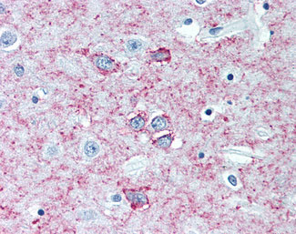 Anti-ADORA2A antibody IHC of human brain, putamen. |