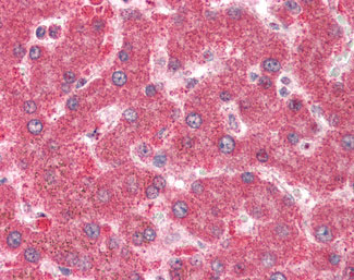 Anti-Xanthine Oxidase antibody IHC staining of human liver. |