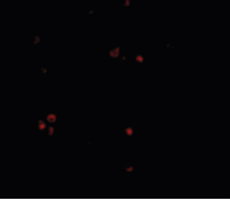 Immunofluorescence of MDA5 in Human Lymph Node cells with MDA5 antibody at 20 ug/ml.