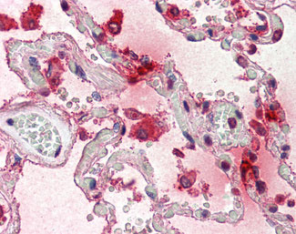 Anti-TPSAB1 / Mast Cell Tryptase antibody IHC of human lung. |
