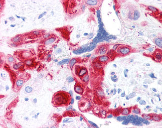 Anti-TGM2 / Transglutaminase 2 antibody IHC of human placenta. |