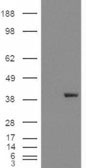 HEK293 overexpressing AKR1A1 (RC200302) and probed with the antibody (mock transfection in first... |