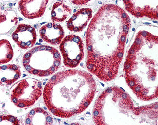 Anti-FOLH1 / PSMA antibody IHC of human kidney. |