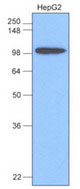 Cell lysates of HepG2 (30 ug) were resolved by SDS-PAGE, transferred to PVDF membrane and probed... |