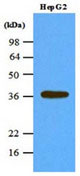 Cell lysates of HepG2 (45 ug) were resolved by SDS-PAGE, transferred to NC membrane and probed... |