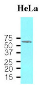 Cell lysates of HeLa(30 ug) were resolved by SDS-PAGE, transferred to NC membrane and probed... |