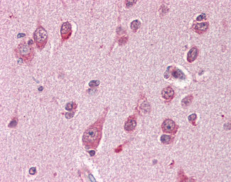 Anti-GAPDH antibody IHC of human brain, cortex. |