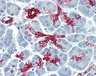 Anti-Cytokeratin 19 antibody IHC of human pancreas. |