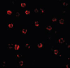 Immunofluorescence of Caspase-1 in HeLa cells with Caspase-1 antibody at 20 ug/ml.