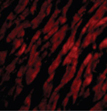 Immunofluorescence of CRTH2 in Human Heart cells with CRTH2 antibody at 20 ug/ml.