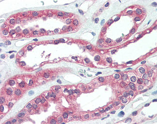 Anti-ARHGEF17 / TEM4 antibody IHC of human kidney. |