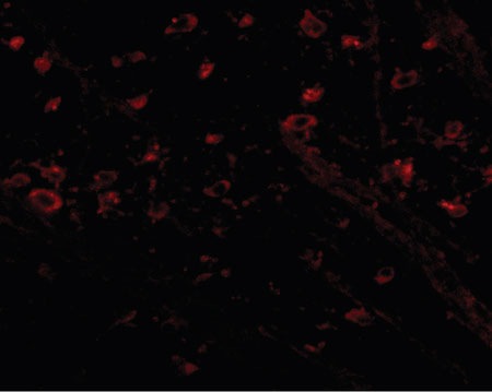 Immunofluorescence of CRMP1 in mouse brain tissue with CRMP1 antibody at 5 ug/ml.