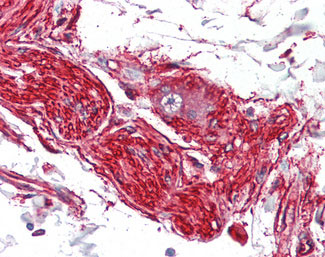 Anti-S100A10 antibody IHC of human nerve and ganglion cell. |