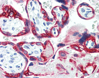 Anti-KRT18 / Cytokeratin 18 antibody IHC of human placenta.