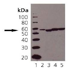 Western blot of ERp57 (Grp58): Lane 1: MWM, Lane 2: CHO-K1 lysate, Lane 3: Human Liver... |