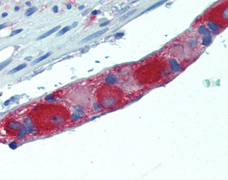 Anti-AMPH / Amphiphysin antibody IHC of human small intestine, submucosal plexus. |