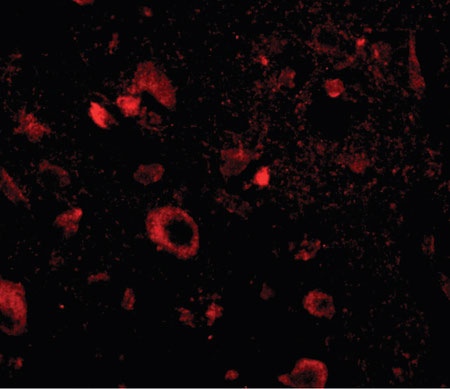 Immunofluorescence of aipl1 in human brain tissue with aipl1 antibody at 20 ug/ml. |