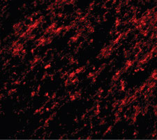 Immunofluorescence of stk39 in human brain tissue with stk39 antibody at 20 ug/ml.