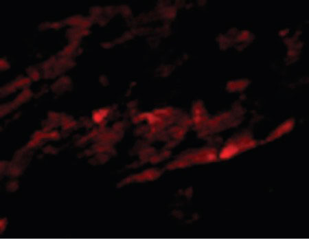 Immunofluorescence of SPG15 in Mouse Heart cells with SPG15 antibody at 20 ug/ml.