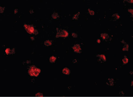 Immunofluorescence of JPH3 in human brain tissue with JPH3 antibody at 20 ug/ml.