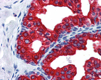 Anti-SERPINE1 / PAI-1 antibody IHC of human prostate. |