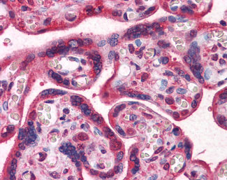Anti-LAMB1 antibody IHC of human placenta.