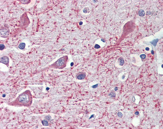 Anti-CYP26A1 antibody IHC of human brain, cortex. |