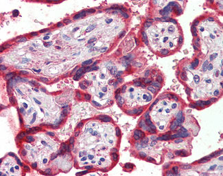 Anti-THBS1 / Thrombospondin antibody IHC of human placenta. |