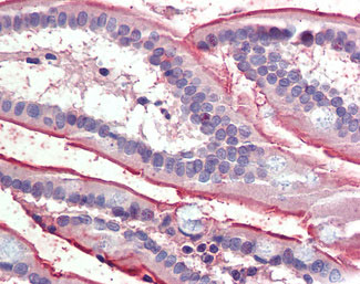 Anti-SLC5A1 / SGLT1 antibody IHC of human small intestine. |
