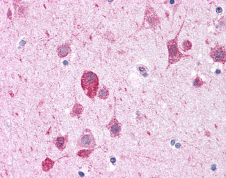 Immunofluorescence of CAPS1 in human brain tissue with CAPS1 antibody at 20 ug/ml.