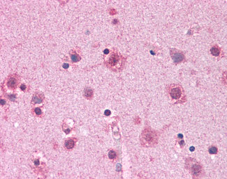 Immunofluorescence of CAPS1 in human brain tissue with CAPS1 antibody at 20 ug/ml.