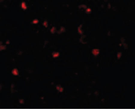 Immunofluorescence of TMEM16B in Human Brain cells with TMEM16B antibody at 20 ug/ml. |