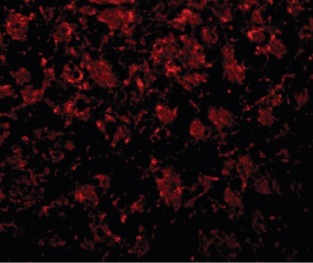 Immunofluorescence of GOLPH2 in rat brain tissue with GOLPH2 antibody at 20 ug/ml.